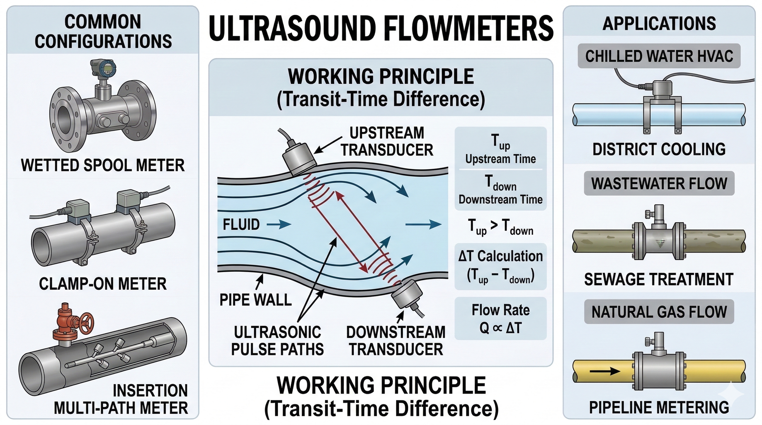 The biggest advantage of ultrasonic flow meters is that they clamp directly onto the outside of the pipe — no cutting, no shutdowns, no disruption to the plumbing system. That makes them an attractive choice when opening up the plumbing is either impractical or undesirable.